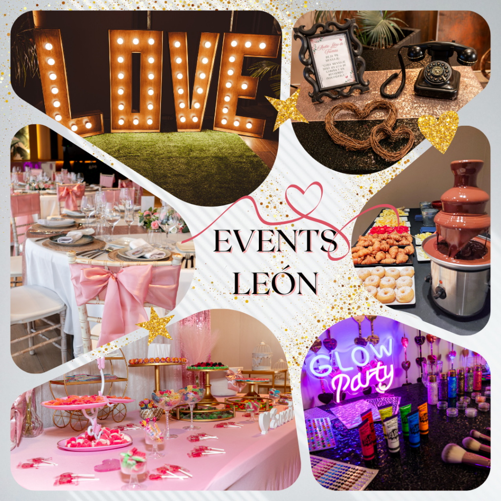 En Events León creemos que cada momento especial merece ser único e inolvidable. Por eso, nos dedicamos a organizar, coordinar y dar vida a todo tipo de celebraciones: bodas, bautizos, comuniones, baby showers, cumpleaños, despedidas de solteros, aniversarios… ¡Cualquier motivo es perfecto para festejar! Nuestro objetivo es simple: que tú solo disfrutes mientras nosotros nos encargamos de todo. Para lograrlo, contamos con servicios llenos de creatividad que convierten cada evento en una experiencia mágica. Deja que tu próxima fiesta hable por ti y sorprenda a todos. Porque celebrar es disfrutar… y nosotros estamos aquí para que solo tengas que sonreír.
